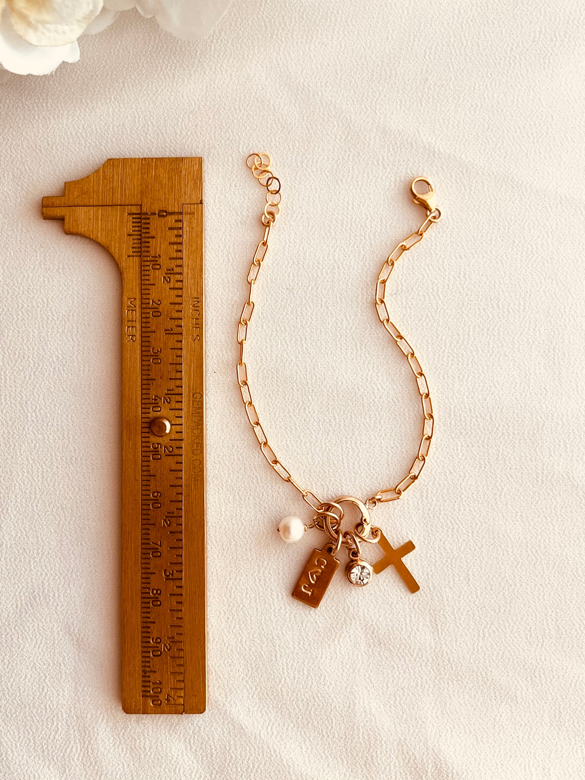This 14k gold-filled bracelet features a sleek paperclip chain and a signature charm holder clasp — designed to carry your story. Add your favorite charms, initials, or gemstones to create a piece that’s uniquely yours.