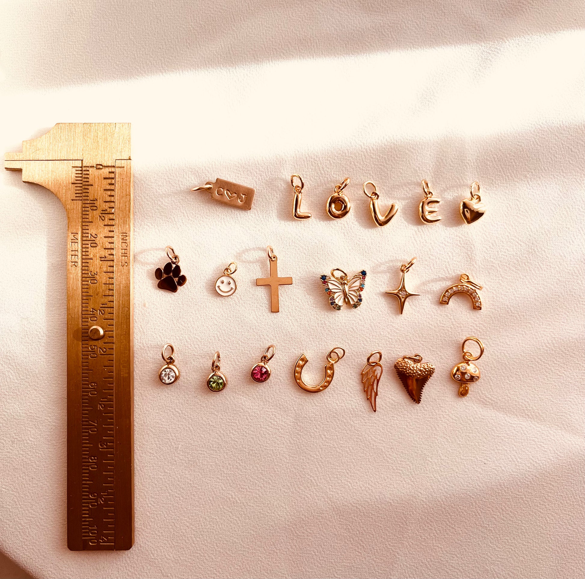• The circle clasp holder is approximately 11mm and is gold-filled. It can accommodate between 1 to 5 charms.