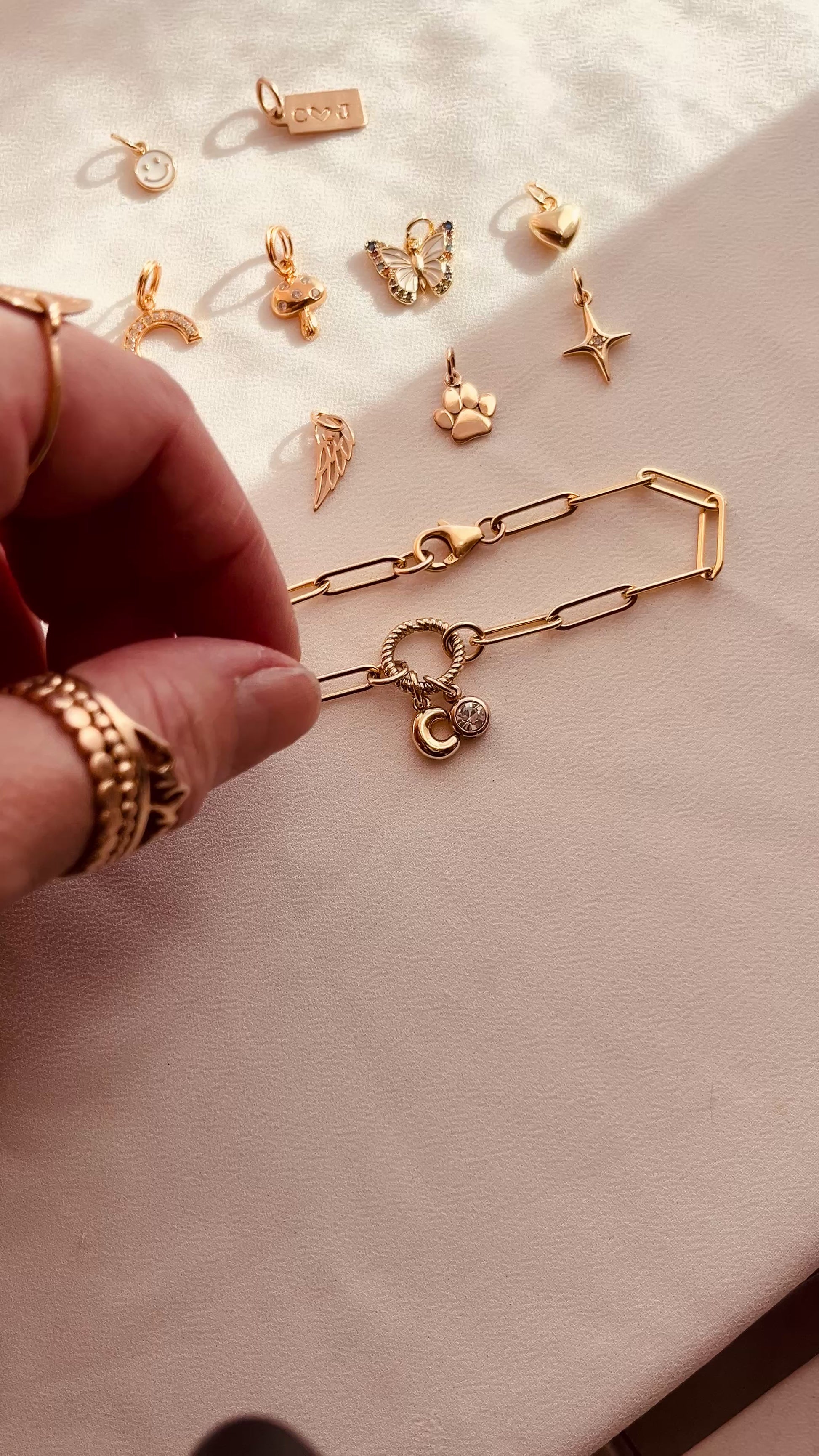 Easily personalize your style with the Gold Charm Holder Bracelet. Add any charms from our store to create a unique and meaningful accessory. Enhance your look and showcase your personality with ease.