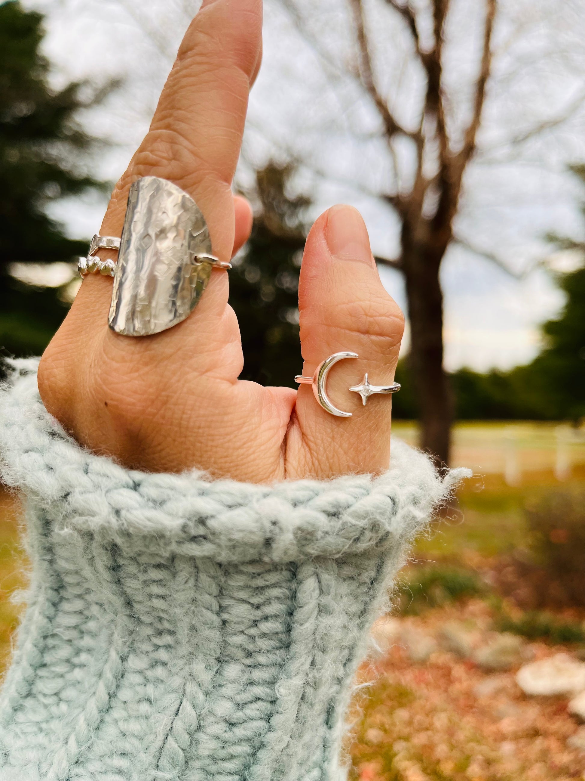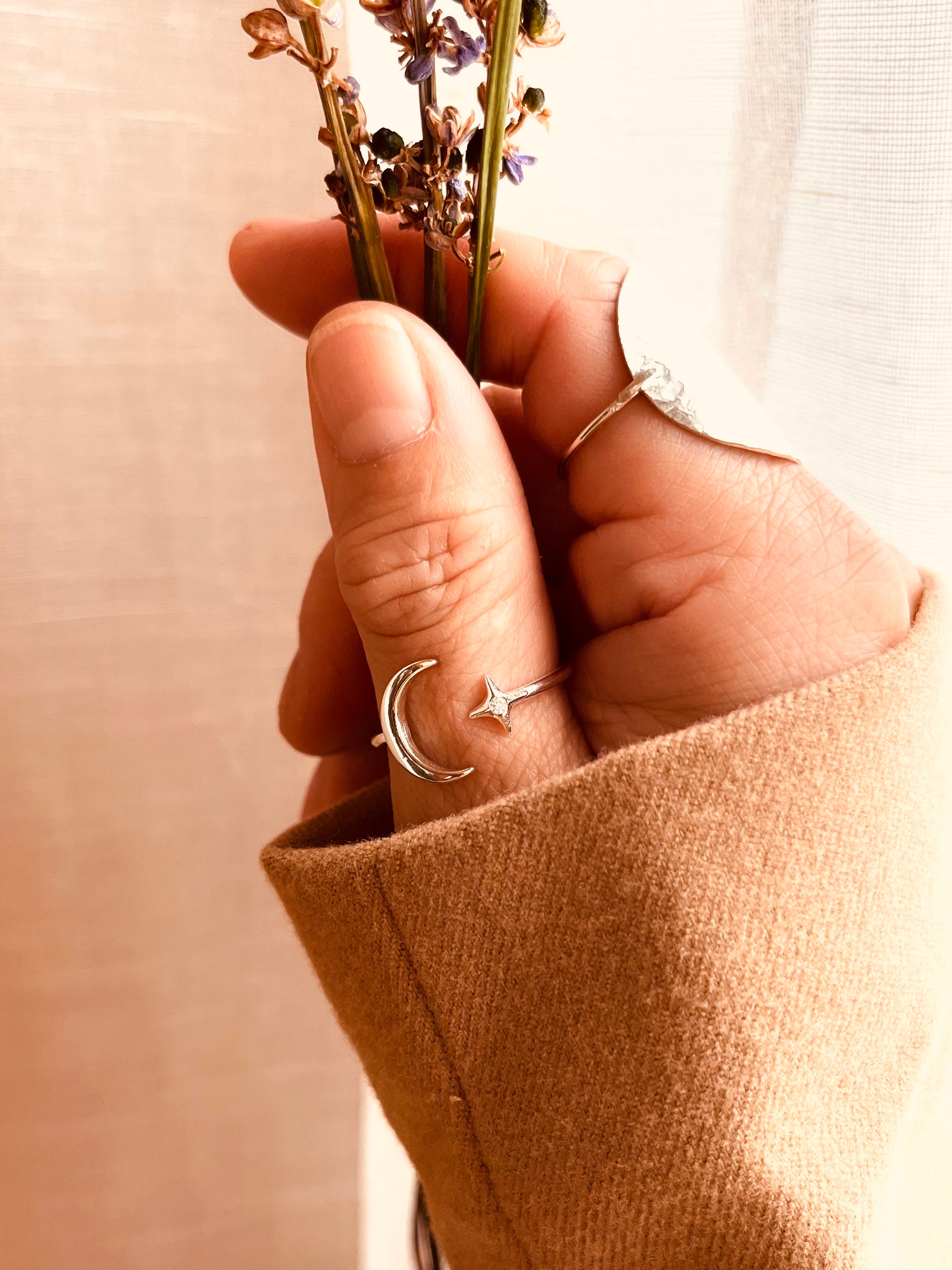 Dainty 925 sterling silver ring crescent and star with cubic zirconia.