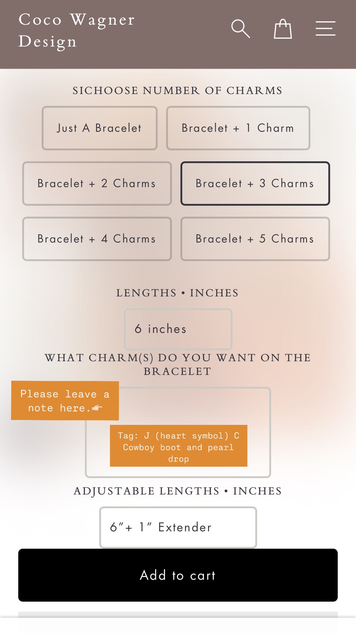 When you add this piece to your cart, the form will prompt you to leave the following details.